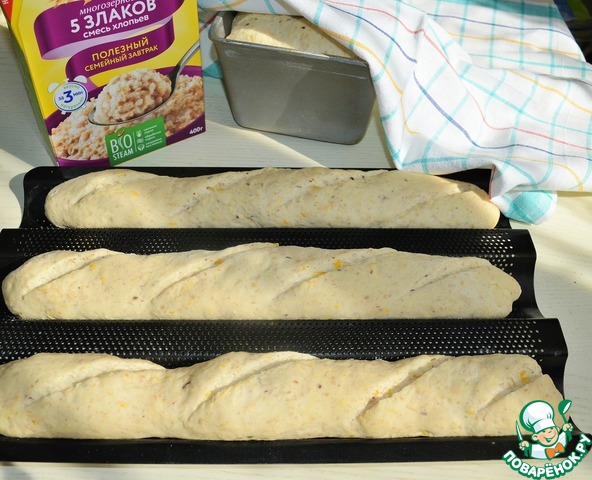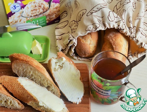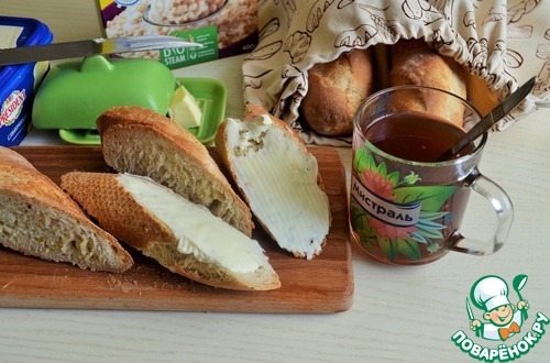 Завтрак не всегда подается хозяйкой, зачастую мы уходим раньше остальных из дома. Позаботьтесь заранее, испеките такие багеты или хлеб. И вашей семье обеспечен вкусный, полезный завтрак. Хоть с чаем, хоть к кофе, а деткам налейте стакан молока.