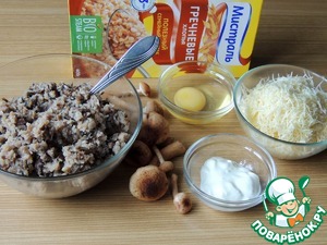• Гречку смешать с грибами. Добавить сметану, яйцо, натертый сыр. Такая начинка не течет, не рассыпается и очень вкусная!