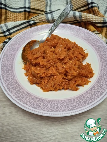 Среди тех немногих заготовок на зиму, что мы делаем дома, почетное место занимает морковная икра. Рецепт существенно отличается от того, что есть на сайте. Приготовление несложное, хотя времени требует. Закуска выходит в меру острая, кисловато-сладковатая, зимой к закусочному столу – милое дело! Готовить ее лучше всего в сезон овощей, когда все – рядом, недорого и спело. Морковь можно натереть и на мелкой терке, а не на крупной, как у нас, а с помидоров снять кожицу. Я этого не делаю, но если есть желание – хуже не будет.