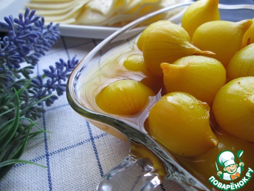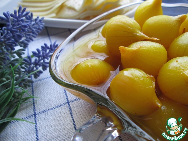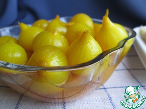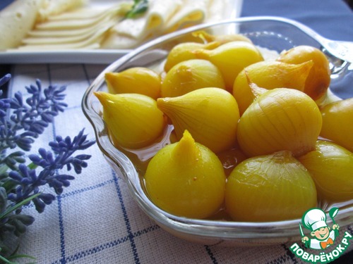 Именно так назывался этот рецепт в журнале "Burda Moden"! Я решила название не менять и скорее познакомить вас с этой аппетитной закуской! Приготовленные таким образом луковицы очень хороши с жареным мясом, рыбой и сыром!