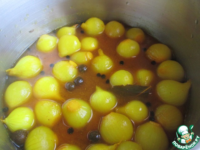 Луковички с маринадом переложила в стеклянную банку и поставила в