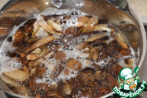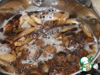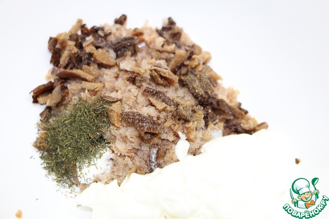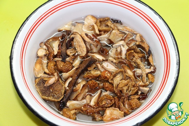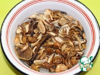 Наполнитель для пончиков может быть любым. В данном случае сухие грибы, которые нужно предварительно замочить не менее, чем на два часа.