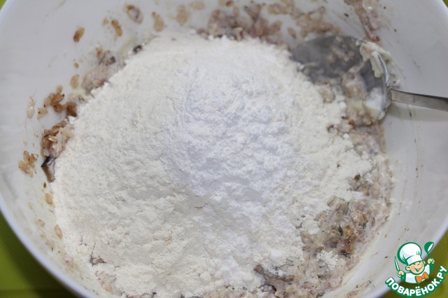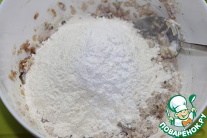 Добавить муку и разрыхлитель.