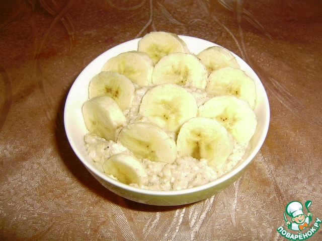 Раскладываем кашу по тарелкам и выкладываем сверху дольки банана.