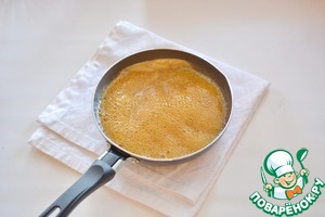 Тесто, вылитое на противень тонким слоем, печётся 5-7 минут.