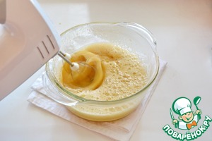 Яйца разделять на желтки и белки не нужно. Разбейте их в миску и начните взбивать миксером.