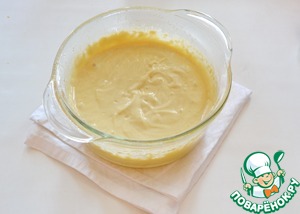 Влейте горячую медовую смесь тонкой струйкой. Взбивайте 1 минуту