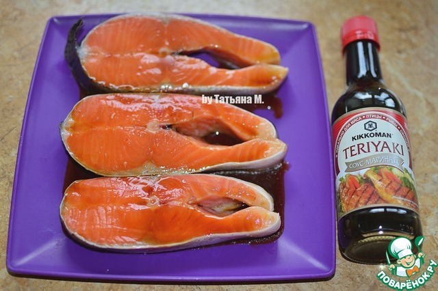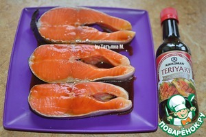 Куски семги залить соевым соусом, втереть соус в мясо и оставить на 30 минут;