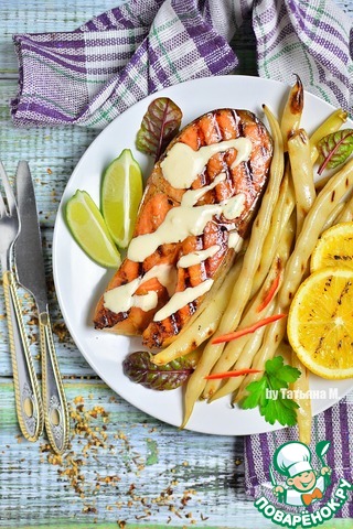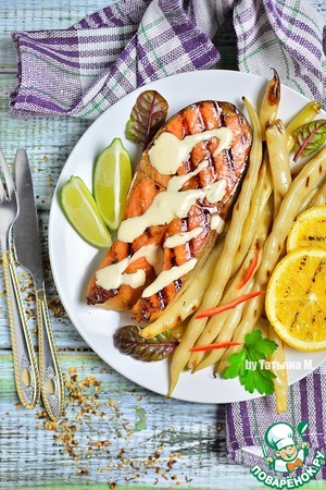 Рецепт «Семга гриль с фасолью и белым соусом»: