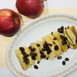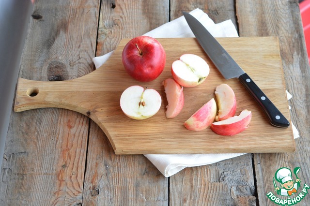 • Яблоки нарежьте на дольки, удалите серединку. Изюм промойте и обсушите