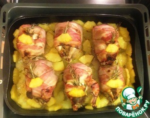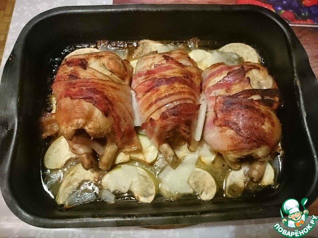 Через положенное время достаем. Мне хотелось что бы бекон побольше закарамелизировался, но побоялась пересушить рябчиков.