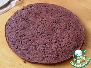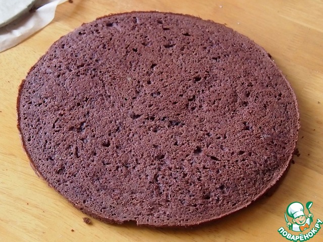 Масло, сахар и соль растереть. Добавить яйцо, взбить или хорошо перемешать. Просеять муку с разрыхлителем и какао, добавить к масляно-яичной смеси, замесить тесто. Дно формы для торта диаметром 26 см застелить бумагой для выпечки, по дну распределить тесто и поставить ее в духовку на 10-12 минут для выпекания, температура 180 градусов. Готовую основу торта остудить в форме. -
