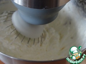Когда начинка остынет, взбить сливки до тугих пиков.