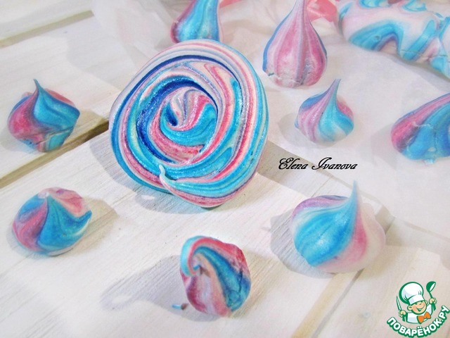 Дорогие поварята, предлагаю вам праздничный вариант очень вкусного и несложного в приготовлении десерта! На сайте много рецептов безе, но у моего своя ''изюминка''. Конечно, это лакомство не для частого употребления (из-за наличия красителей), но ведь и праздники у нас не каждый день, и если угощаться такой вкусняшкой изредка, она подарит вам только удовольствие!