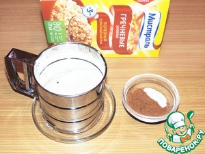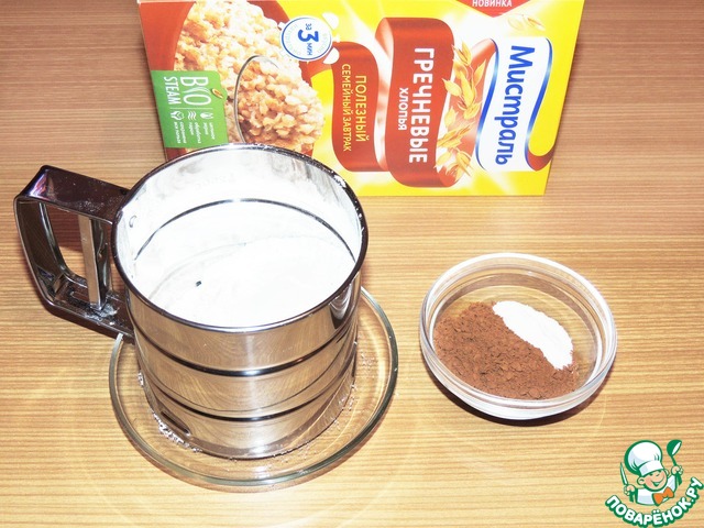 • Просеять муку, смешанную с какао и разрыхлителем.