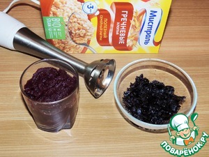 • Добавить свекольное пюре, чернослив, муку и гречку. Перемешать.