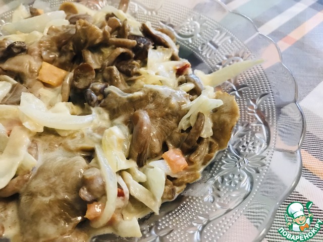Очень люблю сайт поварёнок и всегда, когда хочу что-то приготовить захожу сюда. Но сегодня столкнулась с тем, что к сожалению не нашла рецепт для опят со сметаной. И наконец решила выложить рецепт сама, не судите строго) Посмотрела несколько рецептов и сделала по своему, мои с удовольствием поели дары осени и без добавок не обошлось)