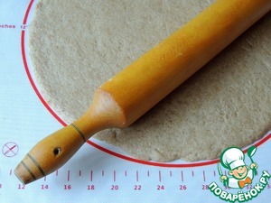 Тесто раскатать до диаметра 30 см, стараясь края сделать потоньше. Далее пирог можно формировать сразу на пергаменте (галета предполагает свободную форму). Я делала пирог в силиконовой форме диаметром 24 см.