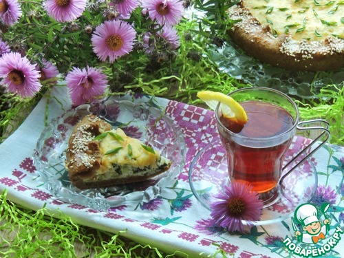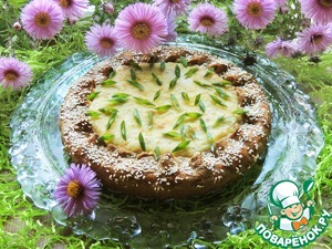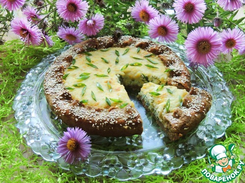 Выпекать галету при 150 градусах 40-45 минут до готовности. Пирог слегка остудить, выложить из формы на сервировочное блюдо и украсить зеленым луком.