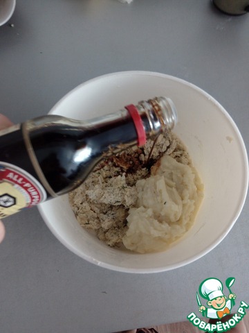 Затем вводим соус и пюре. Замешиваем мягкое и эластичное тесто не липнущее к рукам.
