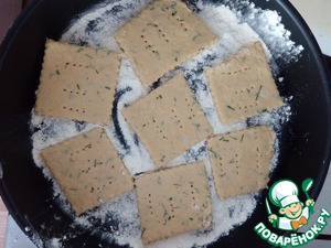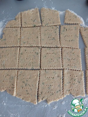 • Тесто раскатываем не очень тонко, разрезаем на квадраты, прокалываем вилкой.