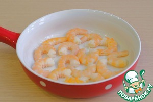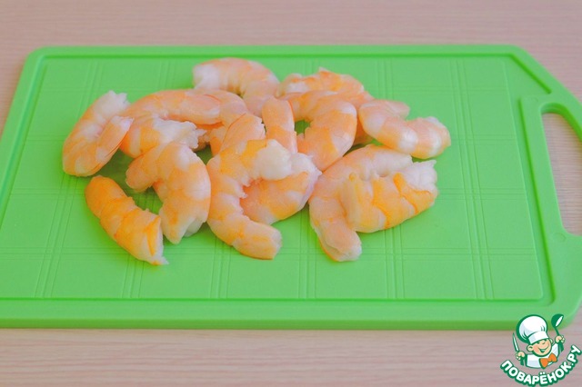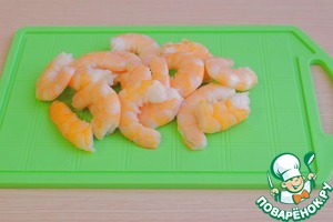 Креветки (крупные) почистить, удалить кишечную вену, промыть.