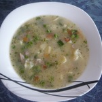 Подаем с зеленью, кусочками мяса из бульона и добрым словом.