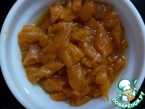 Для начинки мелко поразала курагу, предварительно замоченную на несколько часов.