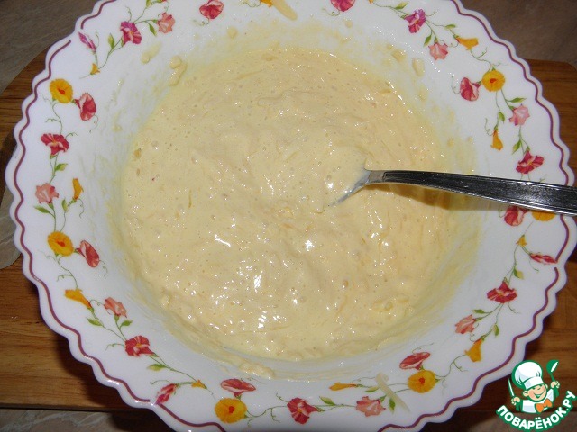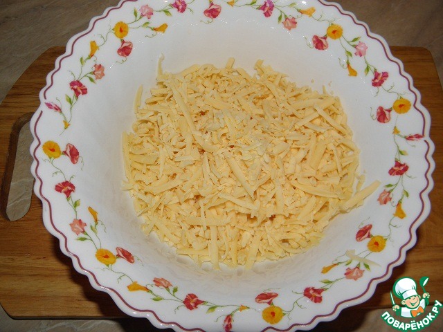 Готовим тесто для рулета: Сыр натираем на крупной терке