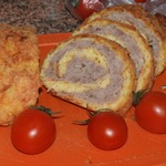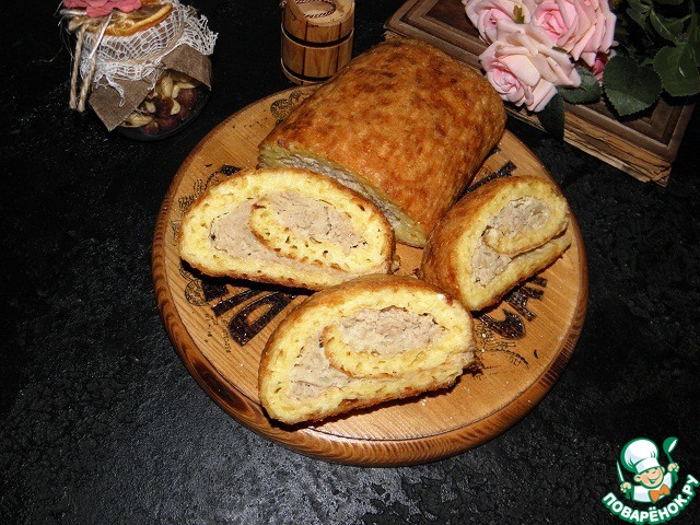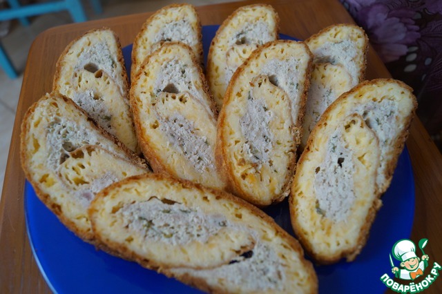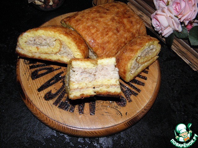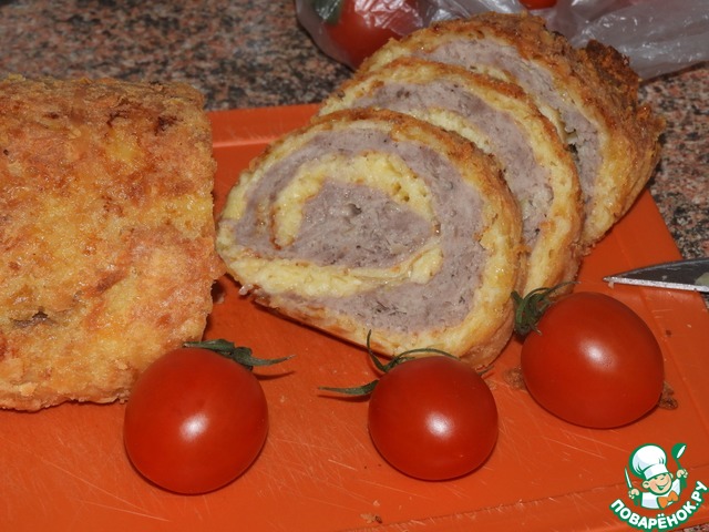 Никаких сомнений нет! Вкусным будет наш рулет! Сытный, сырный золотой! Нежный, сочный и мясной! Есть калории, но все же баловать себя нам можно! Будем пробовать, друзья! Без него в меню нельзя! Готовить- просто моментально! На стол поставить- идеально!
