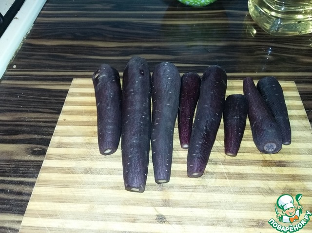 Морковь приготавливаю по рецепту Светланы - мисс, вот по этому рецепту:http://www.p ovarenok.ru/recipes/ show/138132/, правда заменяю обычную вот на такую фиолетовую.