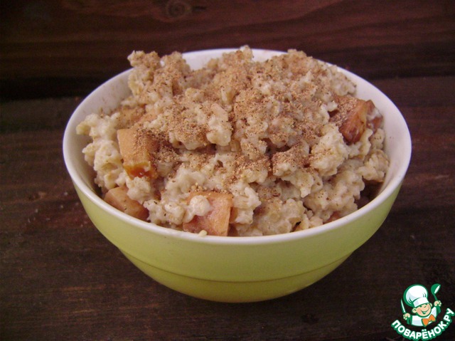 [+4]Яблоко не очищала от кожуры; хлопья взяла 15-минутной варки, получилось около 166 г (стакан = 250 мл); соль и сахар не добавляла; корицы нужно совсем чуть-чуть