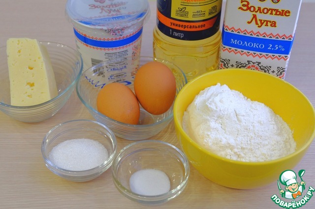 Ингредиенты для приготовления блинов с мясом под сметаной и сыром.