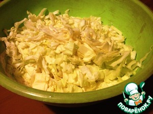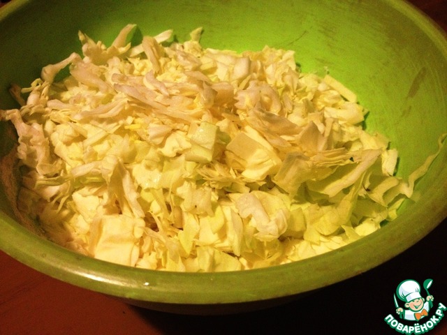 Капусту нашинковать. Добавить в тесто, перемешать.