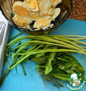 Яйца сварить вкрутую, остудить и нарезать.