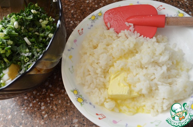 Рис сварить и горячим смешать со сливочным маслом.