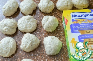 Подкатать в колобки и оставить на 10 минут.