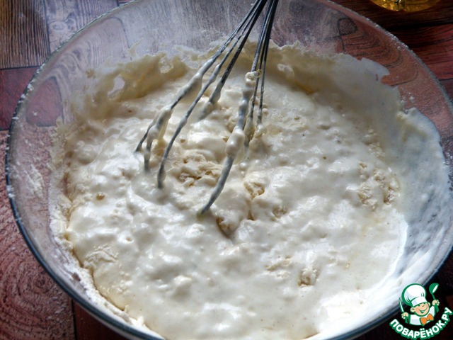 • Все очень просто и легко. В миску вылить «Снежок», вбить яйцо и всыпать просеянную с содой муку. Хлопья растереть в ладонях и добавить в миску. Если печь на кефире или ряженке, добавить сахар – от половины стакана до целого – в зависимости от вашей любимой степени сладости. Быстро перемешать венчиком до объединения ингредиентов. Если останутся небольшие комочки – не страшно, разойдутся. А вот если слишком усердно взбивать тесто, пирог будет резиновым.