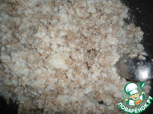 Фарш не обжаривала, положила сырым, а рис полностью сварен.