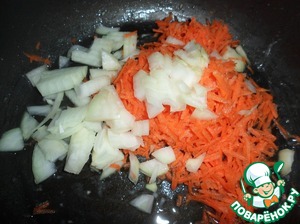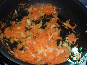 Добавить к фаршу рис, обжарить еще пару минут, помешивая, посолить по вкусу