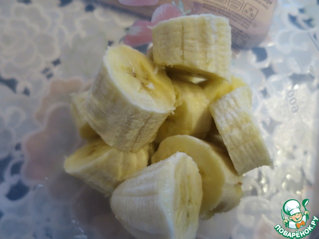 ~ За 5 часов (можно на ночь) сметану для крема откинуть на сито, подложив марлю в несколько слоев, накрыть марлей, убрать в холодильник. Сметана 15% жирности для крема «сметана+сахар» не подойдёт, в банановый можно.