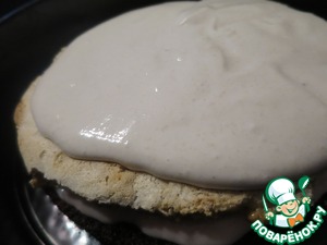 Агар-агар начинает застывать быстро, поэтому сразу же выложить массу на торт. Разровнять поверхность.