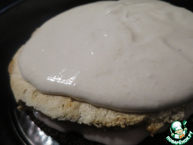 Так как мои коржи были меньше диаметром, чем разъёмная форма, то в зазоры я также распределила суфле. -