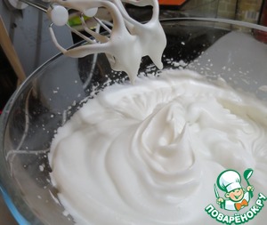 4. Через 5 минут после закипания сиропа добавить порциями к взбитой аквафабе 110 г сахара, не переставая взбивать.