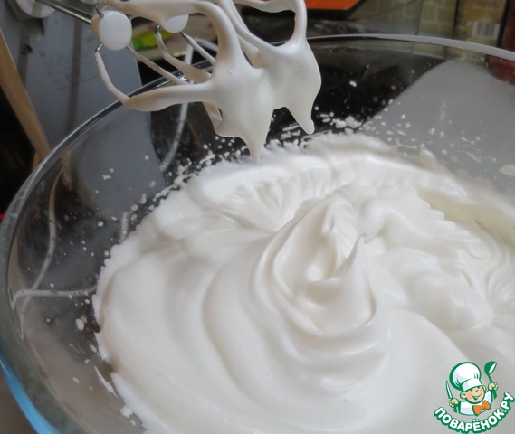 Взбить аквафабу, постепенно добавляя сахар, до устойчивых пиков.