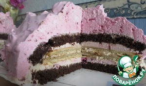 А нет яиц! Ни в коржах, которых два вида, ни в креме двух вкусов, ни в нежнейшем суфле, венчающим этот шикарно-праздничный торт. Идея взята из рецепта Торта "Крещатый Яр", выложенного пользователем yugai ludmila65, адаптирован под вегетарианские вкусы и дополнен нежностью суфле.