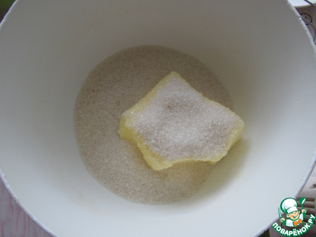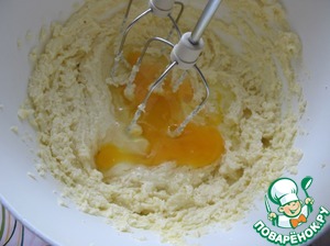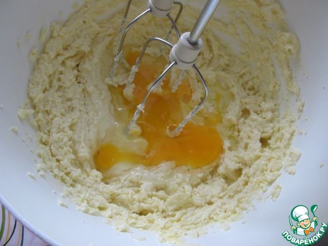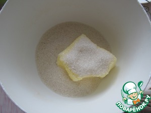 • Размягчённое сливочное масло взбить с сахаром до пышной белой пены.