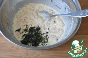 Добавляем рубленную зелень укропа (у меня мороженный), перемешиваем.