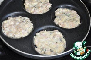 Сковороду смазываем маслом, кладём по полной столовой ложке "теста". Я пекла на сковороде для оладий, но это не имеет значения.