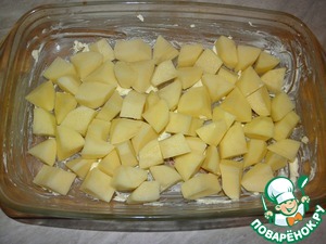 Картофель нарежьте и выложите в блюдо для запекания -